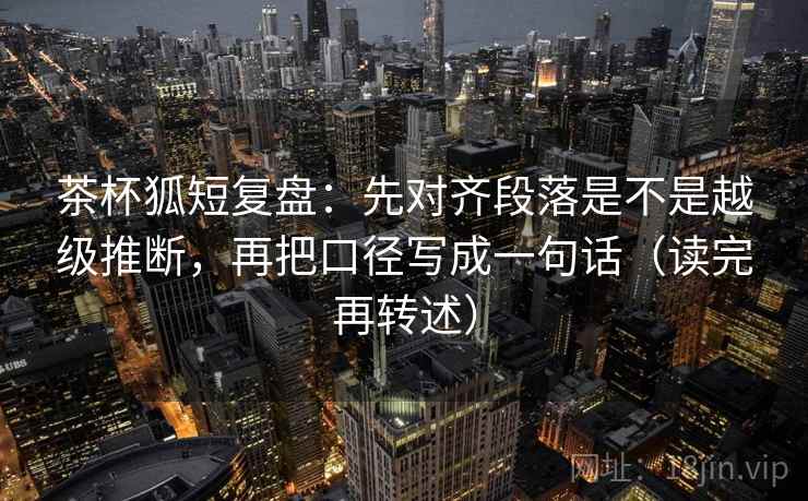 通过对“先对齐段落是不是越级推断,再把口径写成一句话(读完再转述)”这一话题的探讨,我们不仅了解了段落对齐在信息整理和思维升级中的重要性,还揭示了简化表达在信息传递中的关键作用。茶杯狐的智慧正是在这两者的结合上得到了体现,通过对齐段落和简化表达,我们能够更高效地理解和传递复杂的信息。